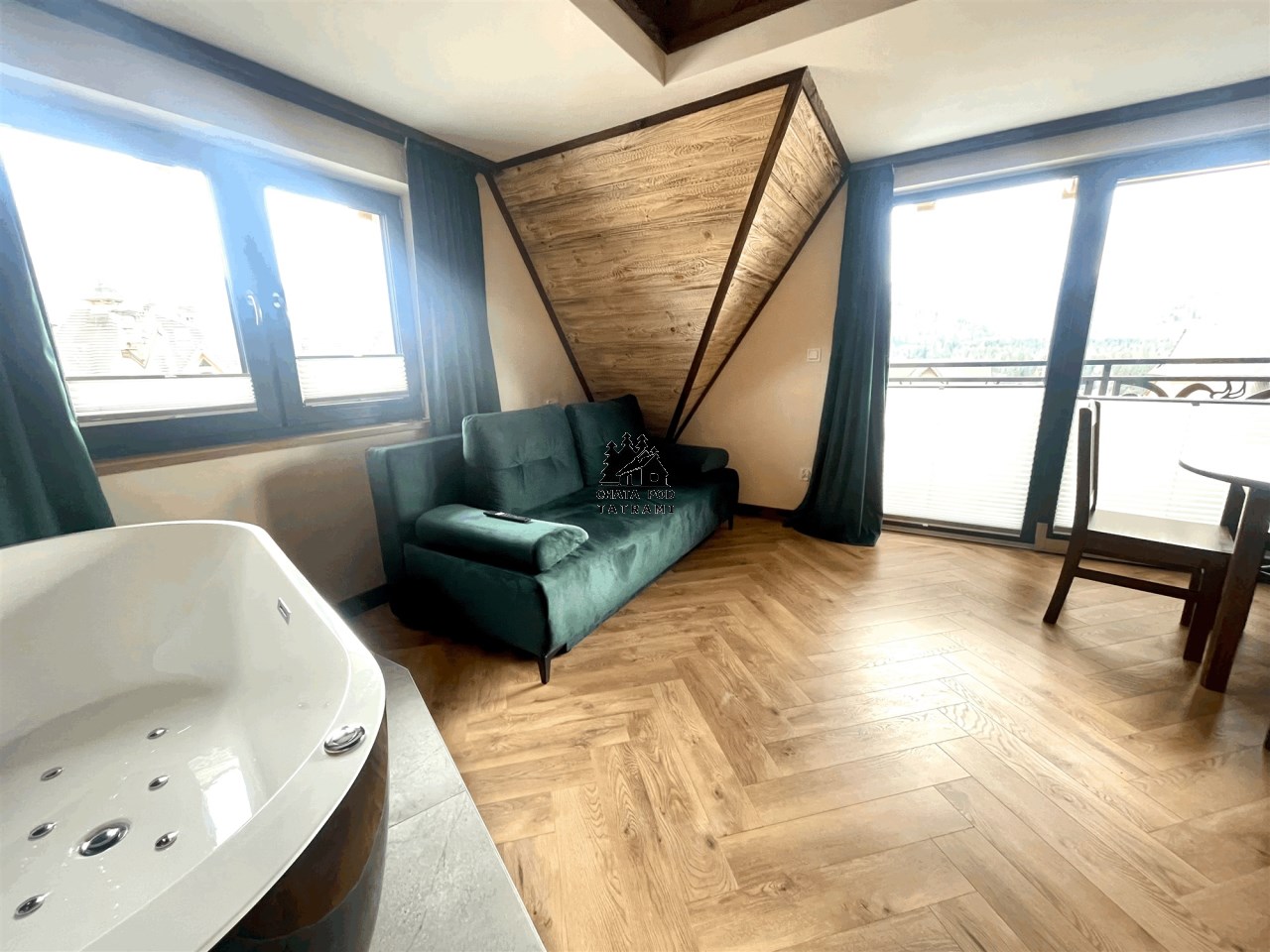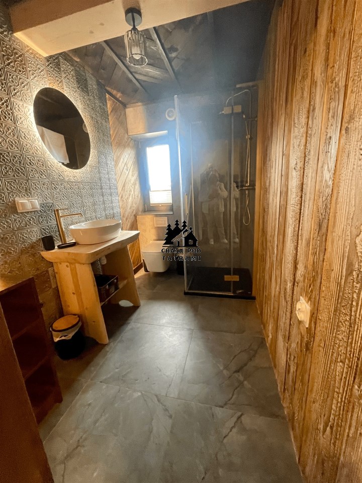 Biuro nieruchomosci Chata pod Tatrami rozpoczęła sprzedaż apartamentów w nowym budynku , usytuowanym na widokowej działce z bardzo dobrym dojazdem drogą asfaltową.Budynek drewniano-murowany dwu piętrowy z użytkowym poddaszem. W budynku 12 apartamentów , wszystkie z widokowymi balkonami lub tarasami ziemnymi ,do których można za dodatkową opłatą dokupić komórkę lokatorską oraz dodatkowe miejsce postojowe.Kilka dodatkowych miejsc postojowych zadaszonych. Budynek posadowiony na działce o pow. około 1100 m2, która stanowi części wspólne, wydzielone tarasy ziemne do mieszkań na parterze ( do wyłącznego korzystania), miejsca postojowe.Lokal nr 12 to lokal mieszkalny 3 pokojowe ( 2 sypialnie, dzienny pokój z aneksem kuchennym, 2 widokowe balkony ) do którego ceny podanej w ofercie należy doliczyć VAT 8%, Woda i kanalizacja gminna . Ogrzewanie ekologiczne - panele fotowoltaiczne i maty elektryczne podłogowe. Lokal na rzucie zaznaczony kolorem żółtym.